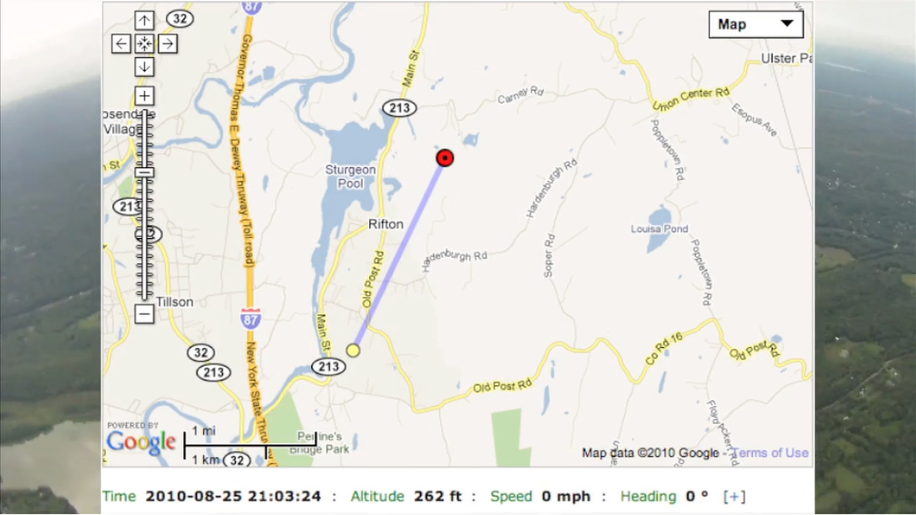 值得注意的是,父子二人并未使用 iPhone 4 的摄像功能,而是将这部智能手机当作飞行器的 GPS 追踪设备,真正执行拍摄工作的是 GoPro。随着气象气球逐渐升入大气层,受气压影响慢慢膨胀,最终发生爆裂。随后,太空舱自带的降落伞确保这套装置平稳下落、返回地球。最终,这对父子借助 iPhone 4 的定位功能,在距离发射点约 30 英里(约 48.3 公里)的地方找到了他们的地球拍摄仓。