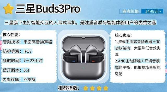 总结:三星Buds3Pro整体适配日常多场景使用,特别适合注重音质细节、追求智能便捷交互与长效续航的用户群体。